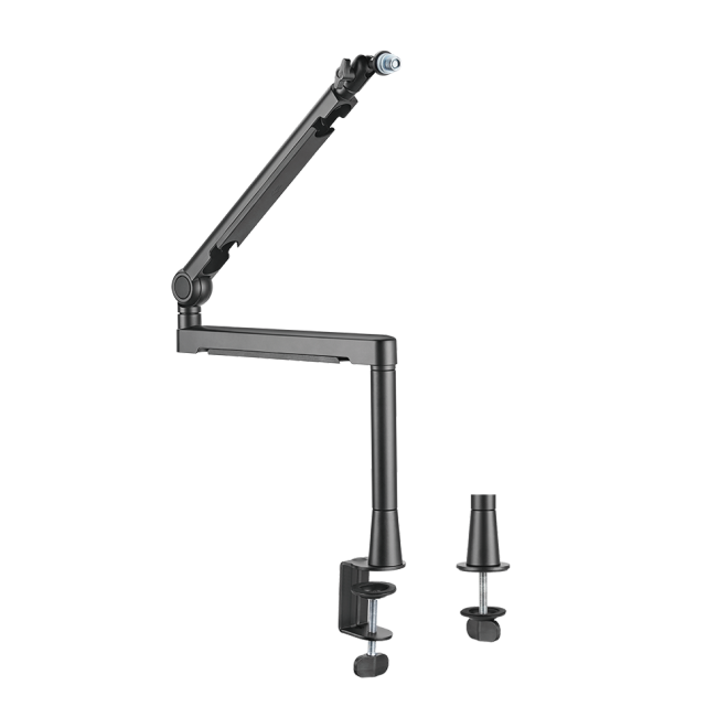 The MDS13-2 Aluminum Professional Studio Microphone Arm is manufactured using advanced design and quality materials, resulting in an arm with smooth and effortless microphone adjustments and positioning. The all-aluminum structure is lightweight, yet sturdy and durable enough to support even the heaviest mics. Clamp-on and grommet mounts are included for versatile mounting options - padded to prevent surface scratches while preventing sound vibration from impacting recordings and live streams. Includes a universal adaptor for use with almost any microphone. With features that customers love and need with a market potential full of growth, the MDS13-2 is the perfect choice to add to your product line today!
