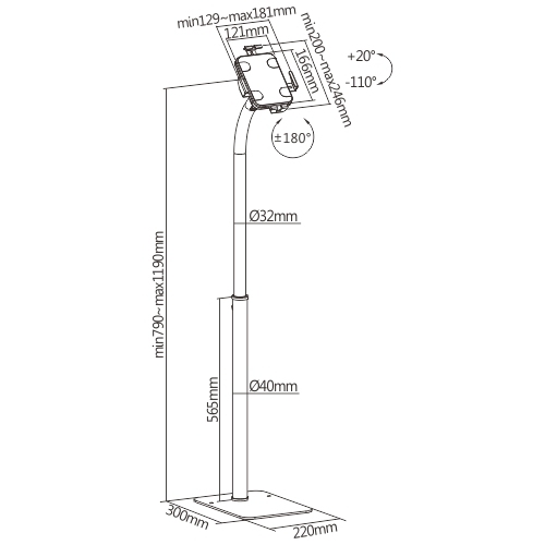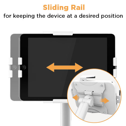 Featuring innovatively designed claws, PAD33-01 is compatible with most 7.9”-11” tablets, including Apple iPad and Samsung Galaxy Tablet. With adjustable height design, the stand is accessible for both children and disabilities. Both horizontal and vertical views, as well as tilt function, are available in order to provide better customer using experience. Silicone and EVA pads provide all-rounded protection for the precious device. Lockable design with anti-theft screw prevents it from theft and unwanted removal. The internal cable management protects wires and creates a professional look for the tablet kiosk.