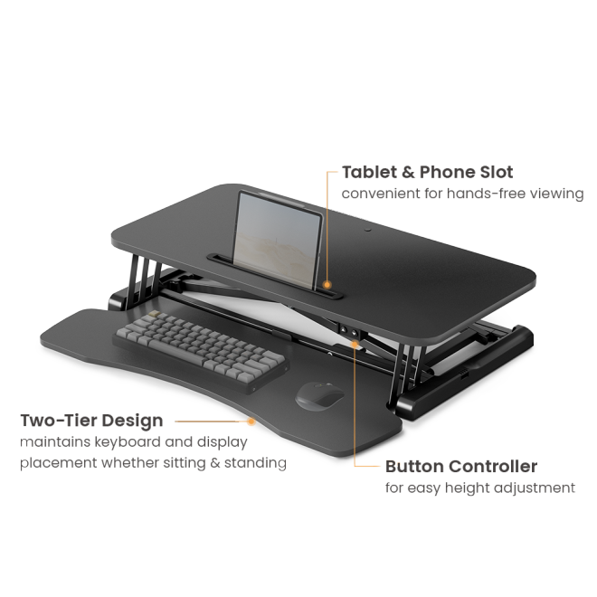 Looking for a cost-effective solution to enhance productivity and comfort in the workplace? Introducing the DWS15-01E Electric X-Lift Desk Converter – a versatile and efficient tool designed to transform any standard desk into a height-adjustable workstation. The desk converter is easy to install and use, requiring no additional hardware or complex assembly. Simply place it on the existing desk and adjust the height with the push of a button, allowing easily switch between sitting and standing positions throughout the day. With its sturdy X-Lift frame and spacious work surface, the desk converter is built to support heavy monitors and laptops, while providing ample space for all your essential work tools and accessories. Plus, the electric motor ensures smooth and quiet operation, so you can focus on your work without any distractions.